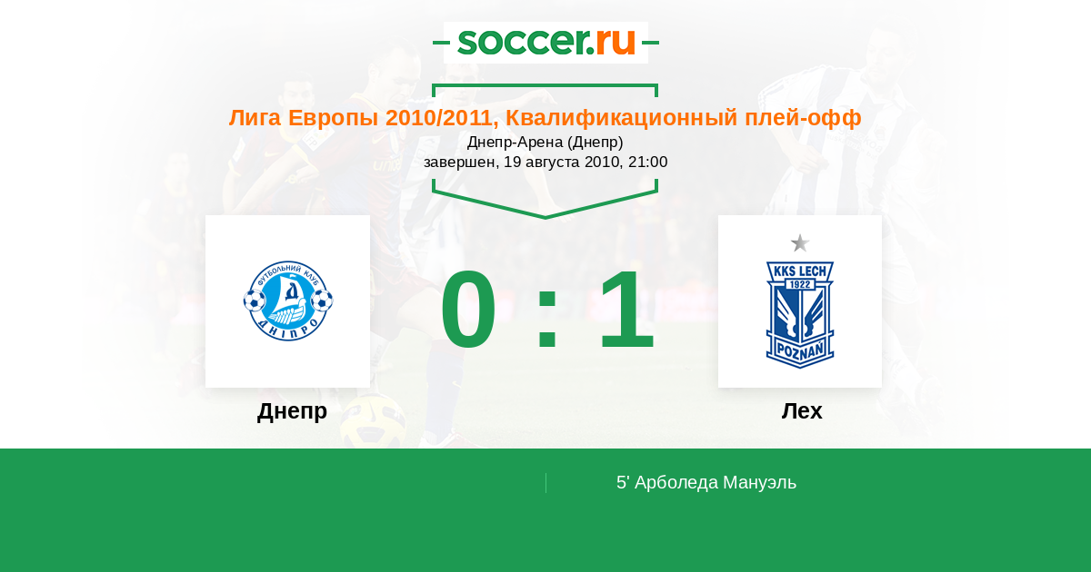 Протокол матча Днепр против Лех