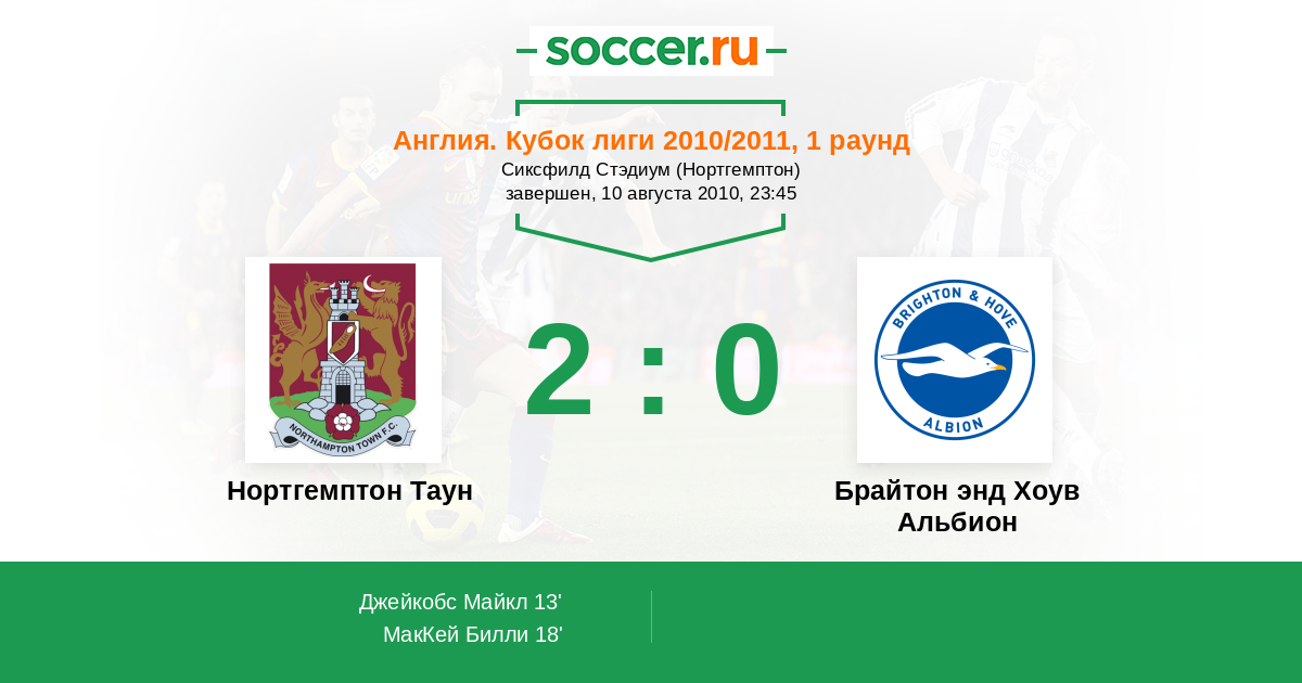 Протокол матча Нортгемптон Таун против Брайтон энд Хоув Альбион