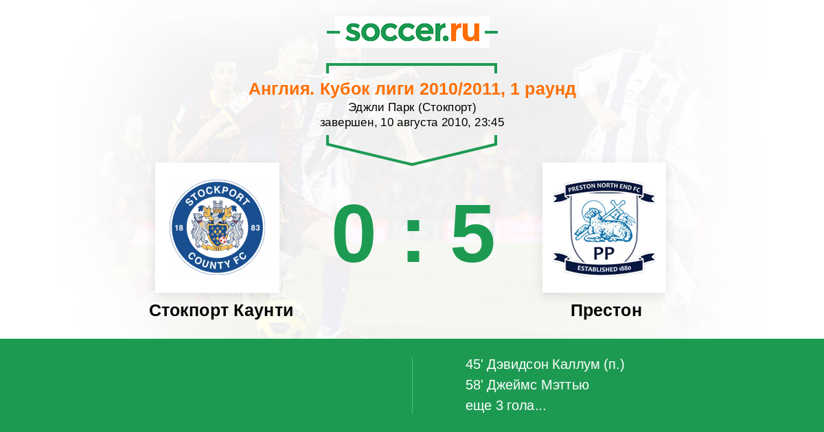 Протокол матча Стокпорт Каунти против Престон