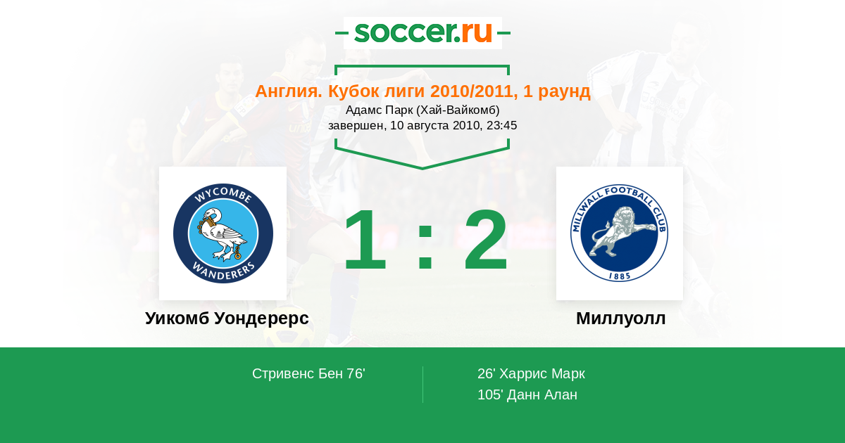 Протокол матча Уикомб Уондерерс против Миллуолл
