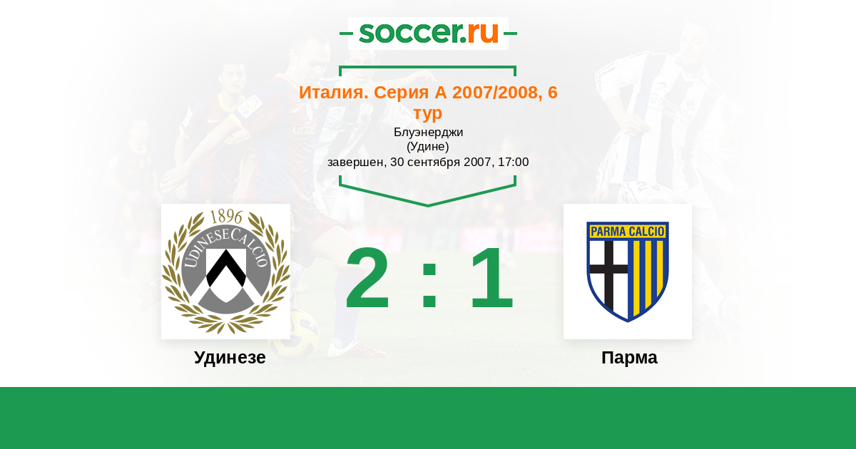 Италия. Серия А 15.10.2006 Парма Логотип футбольный клуб Парма 0:3 Логотип футбольный клуб Удинезе Удинезе