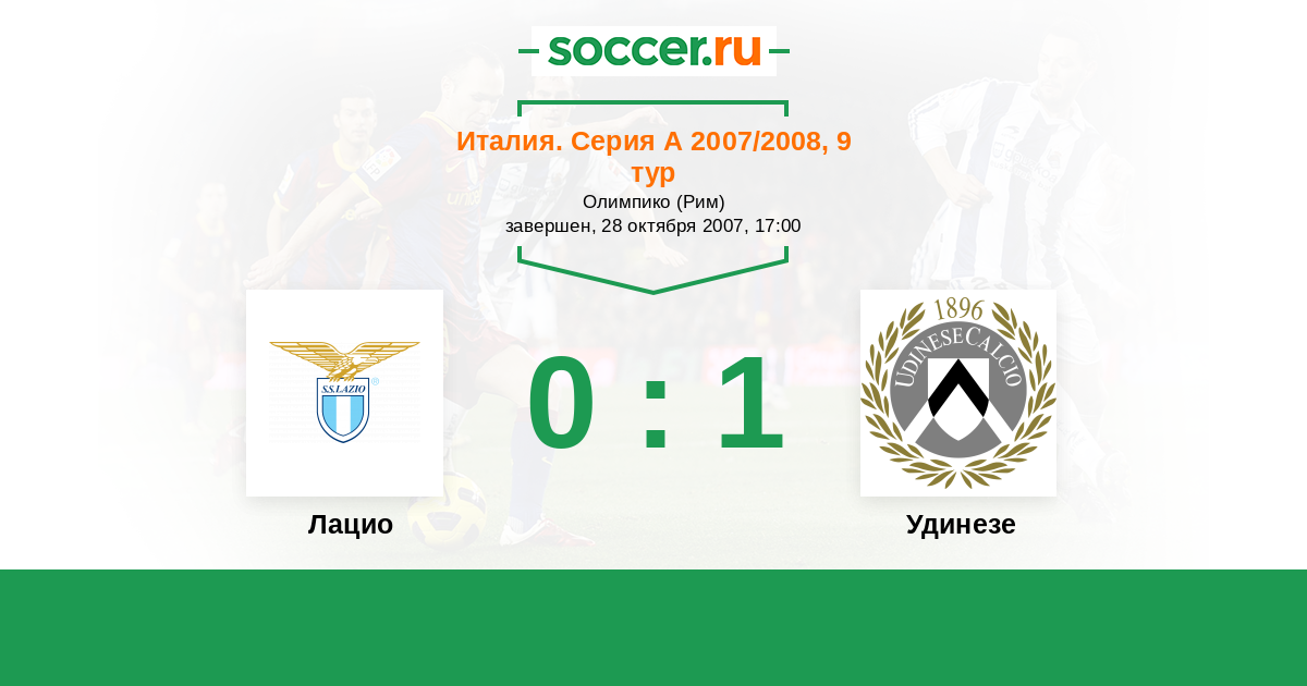 Италия. Серия А 16.10.2022 Лацио Логотип футбольный клуб Лацио (Рим) 0:0 Логотип футбольный клуб Удинезе Удинезе