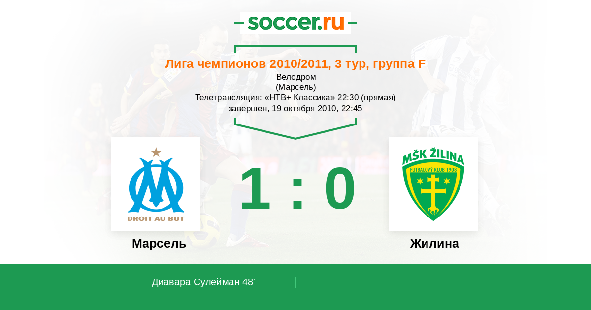 Протокол матча Марсель против Жилина