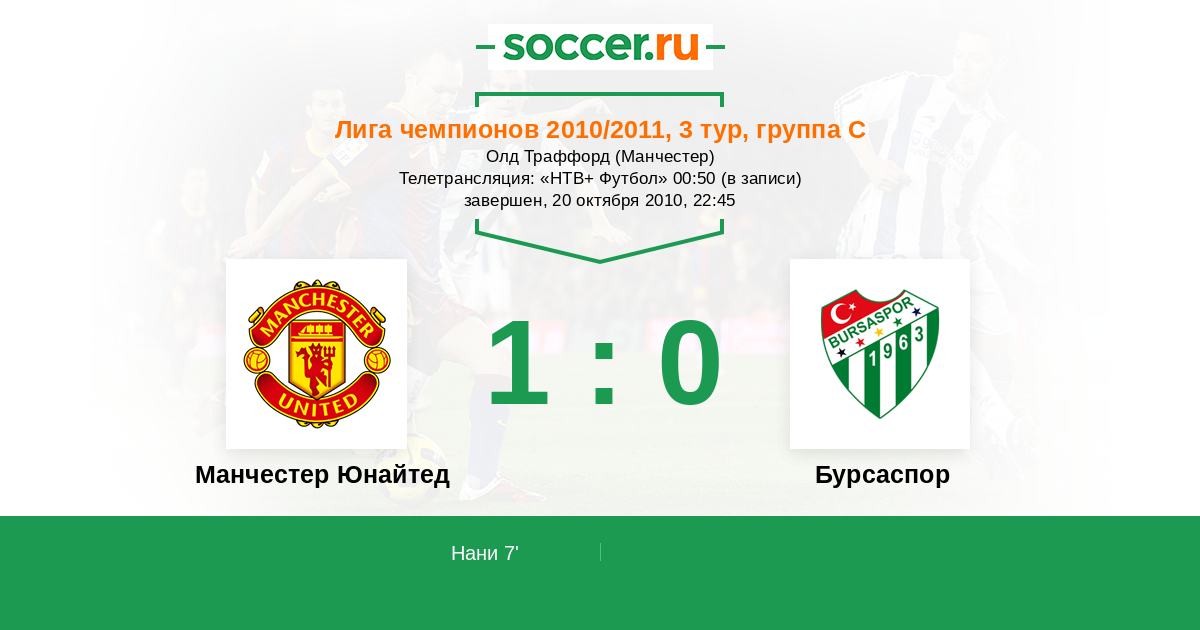Протокол матча Манчестер Юнайтед против Бурсаспор