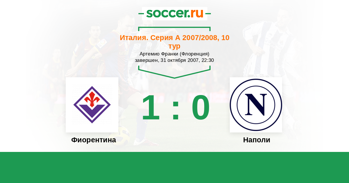 Италия. Серия А 19.03.2008 Наполи Логотип футбольный клуб Наполи (Неаполь) 2:0 Логотип футбольный клуб Фиорентина (Флоренция) Фиорентина