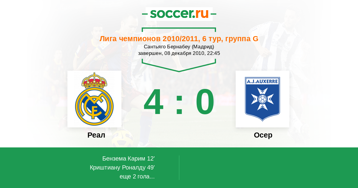 Протокол матча Реал против Осер