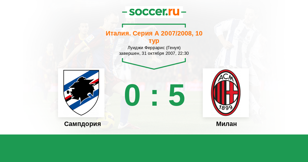 Италия. Серия А 14.10.2006 Сампдория Логотип футбольный клуб Сампдория (Генуя) 1:1 Логотип футбольный клуб Милан Милан