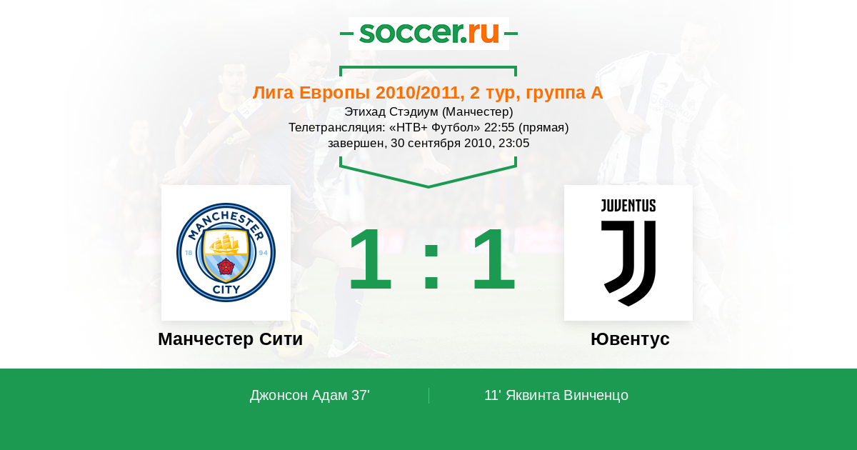 Протокол матча Манчестер Сити против Ювентус