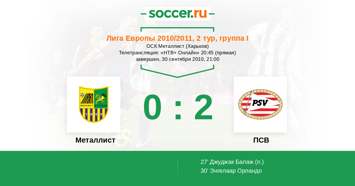 Протокол матча Металлист против ПСВ