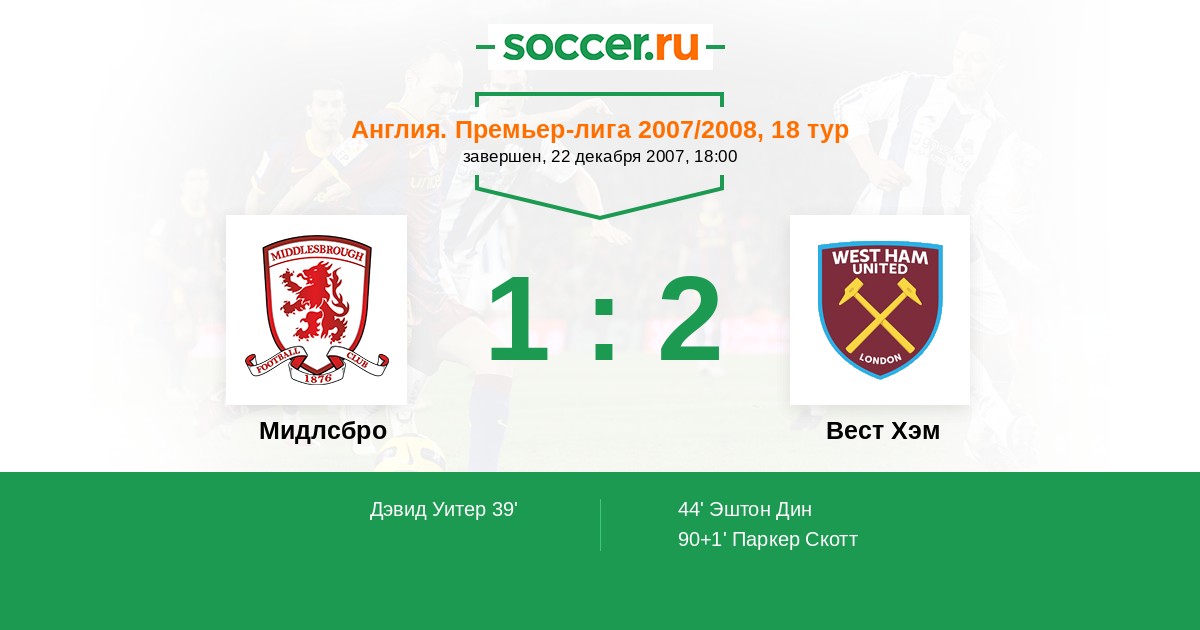 Протокол матча Мидлсбро против Вест Хэм