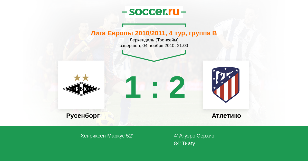 Протокол матча Русенборг против Атлетико