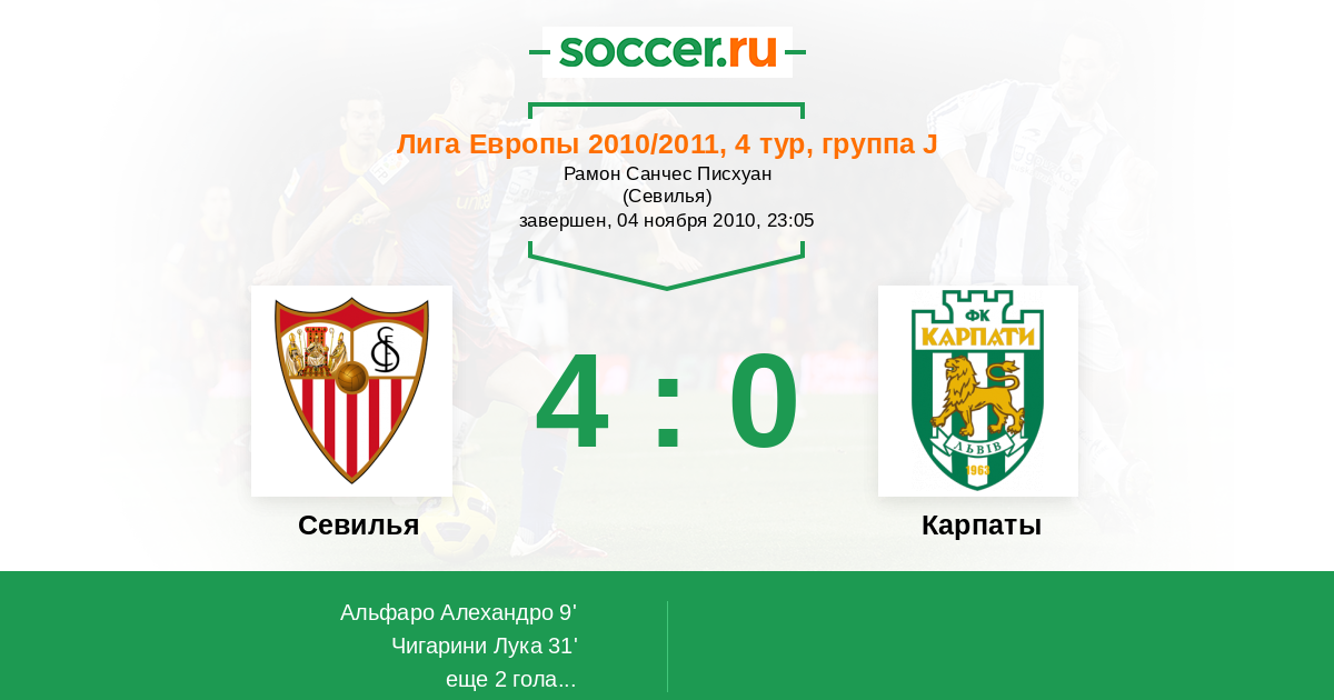 Протокол матча Севилья против Карпаты