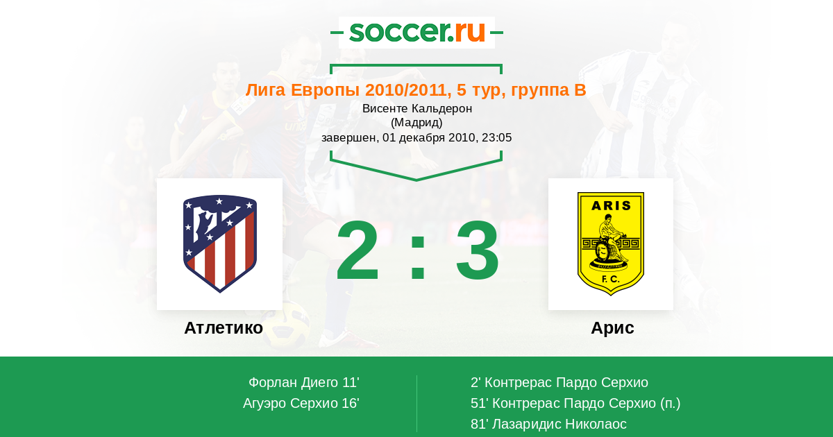 Протокол матча Атлетико против Арис