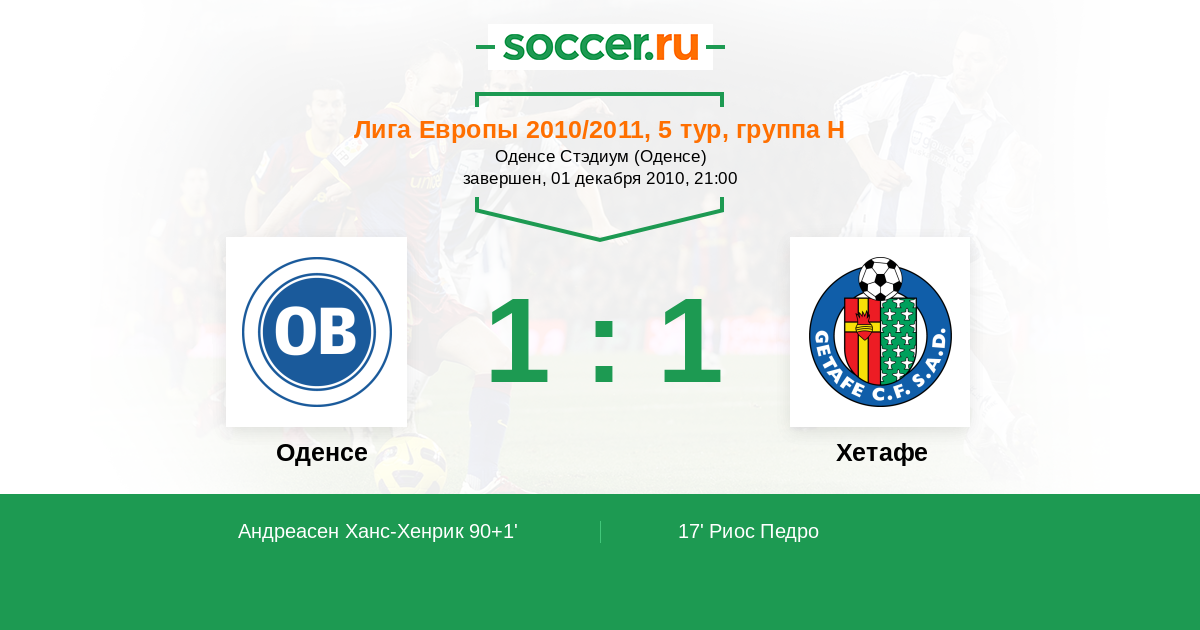 Протокол матча Оденсе против Хетафе