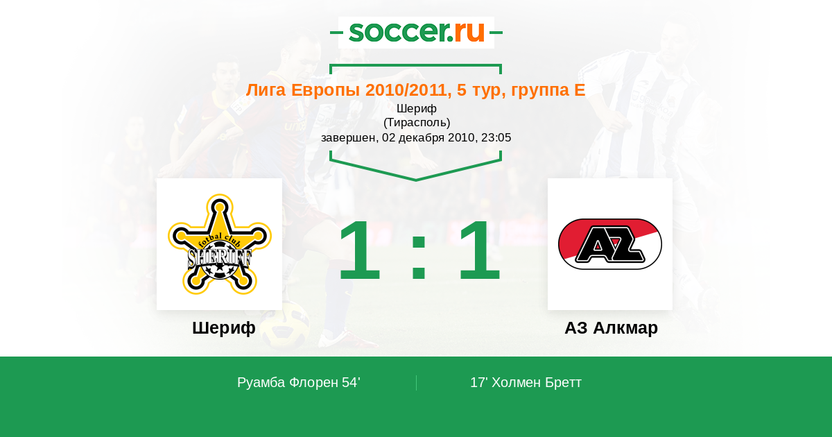 Протокол матча Шериф против АЗ Алкмар