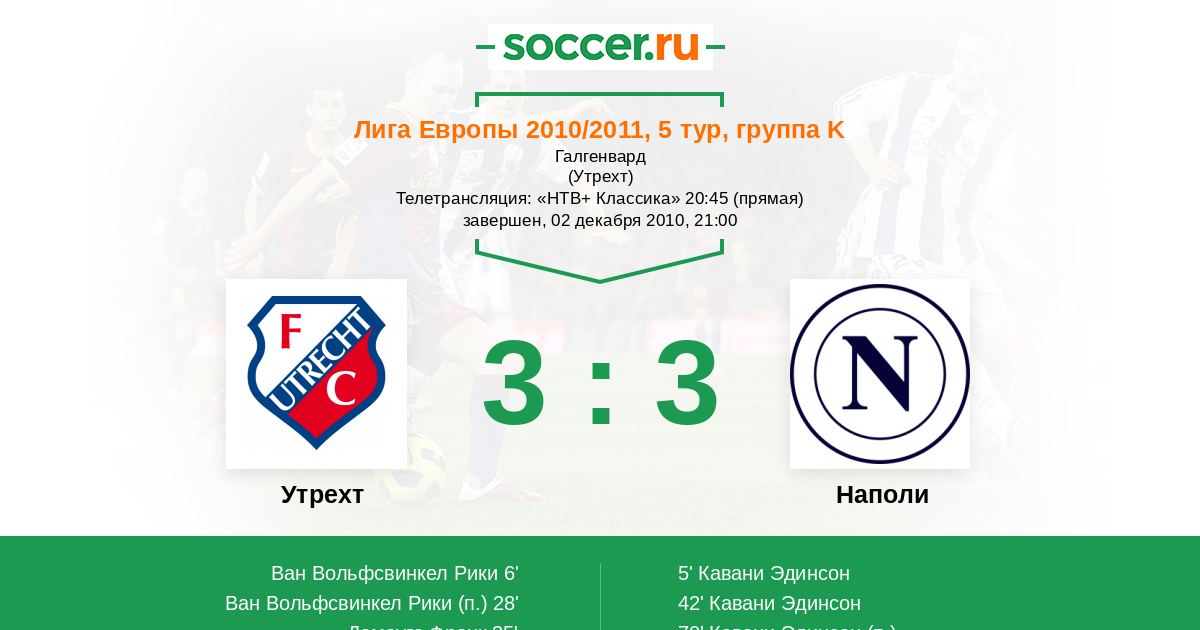 Протокол матча Утрехт против Наполи