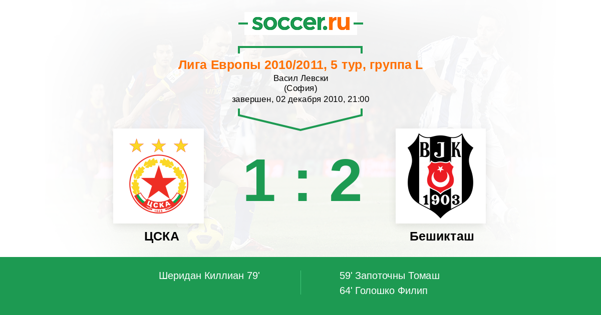 Протокол матча ЦСКА против Бешикташ