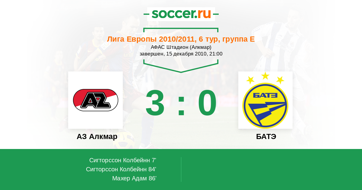 Протокол матча АЗ Алкмар против БАТЭ