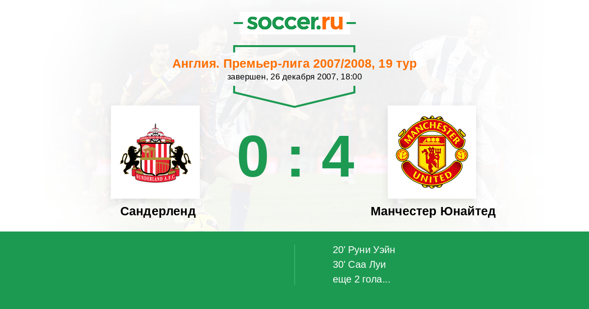 Протокол матча Сандерленд против Манчестер Юнайтед