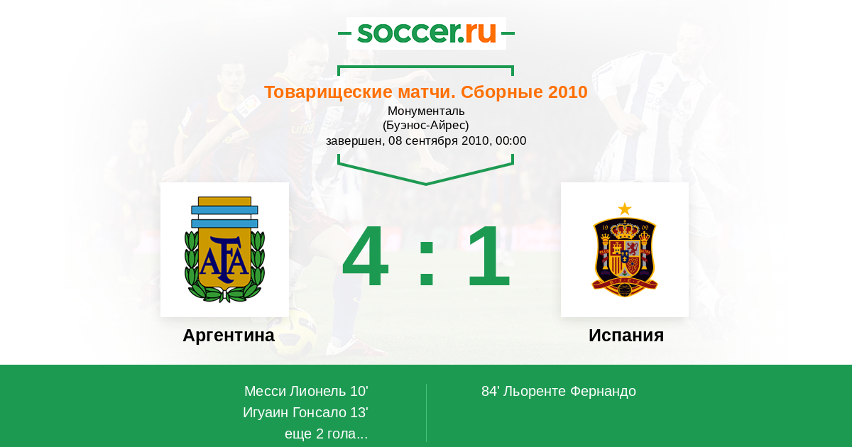 Протокол матча Аргентина против Испания
