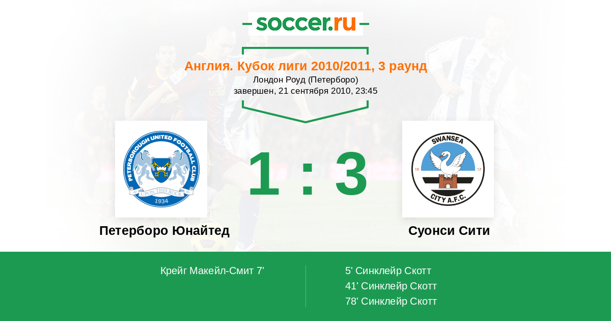 Протокол матча Петерборо Юнайтед против Суонси Сити