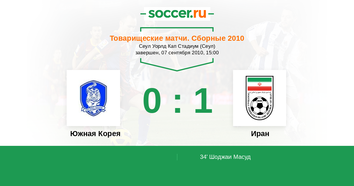 Протокол матча Южная Корея против Иран
