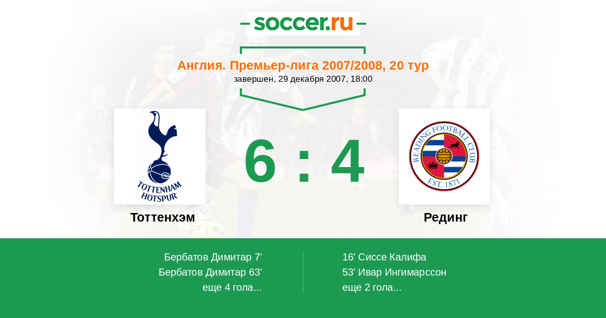 Протокол матча Тоттенхэм против Рединг