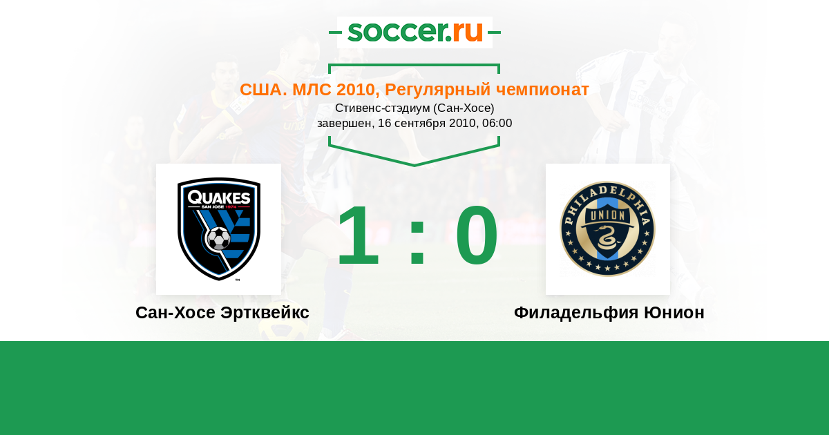 История матча Сан-Хосе Эртквейкс против Филадельфия Юнион