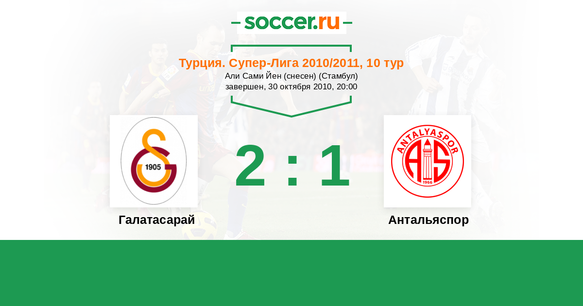 Турция. Суперлига 21.10.2011 Антальяспор Логотип футбольный клуб Антальяспор 0:0 Логотип футбольный клуб Галатасарай (Стамбул) Галатасарай