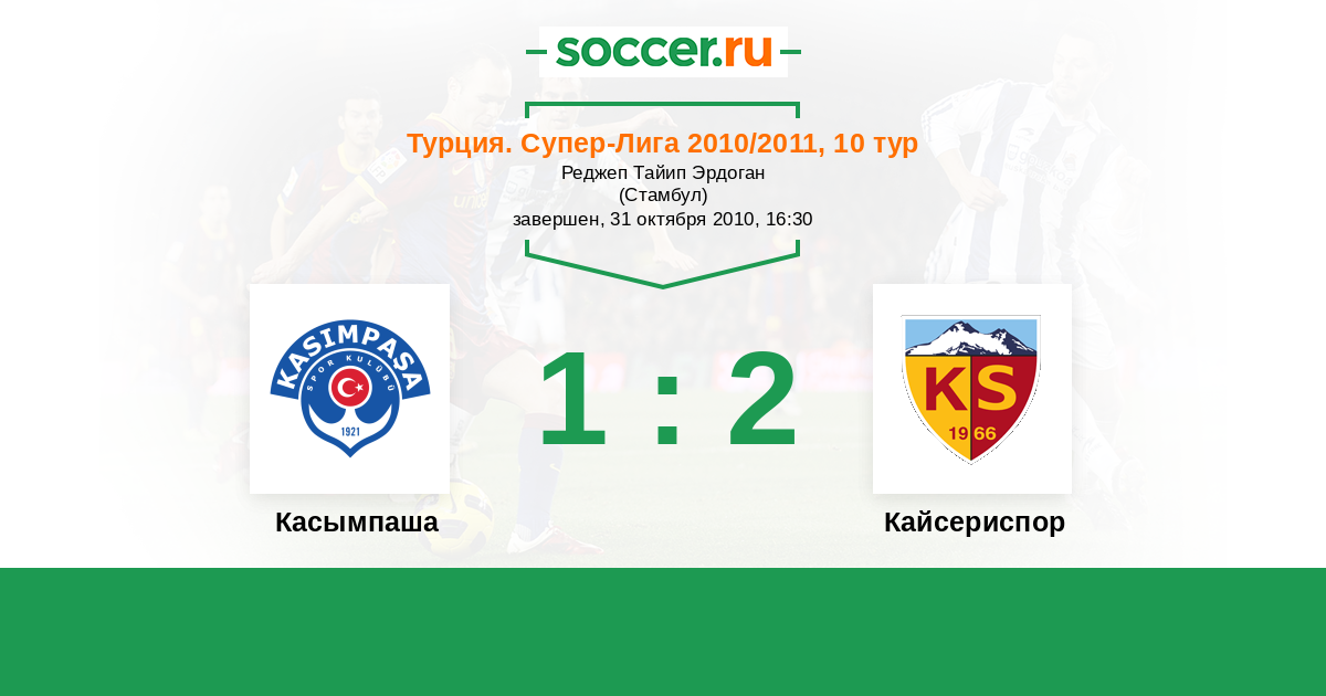Турция. Суперлига 06.03.2010 Касымпаша Логотип футбольный клуб Касымпаша (Стамбул) 2:2 Логотип футбольный клуб Кайсериспор Кайсериспор