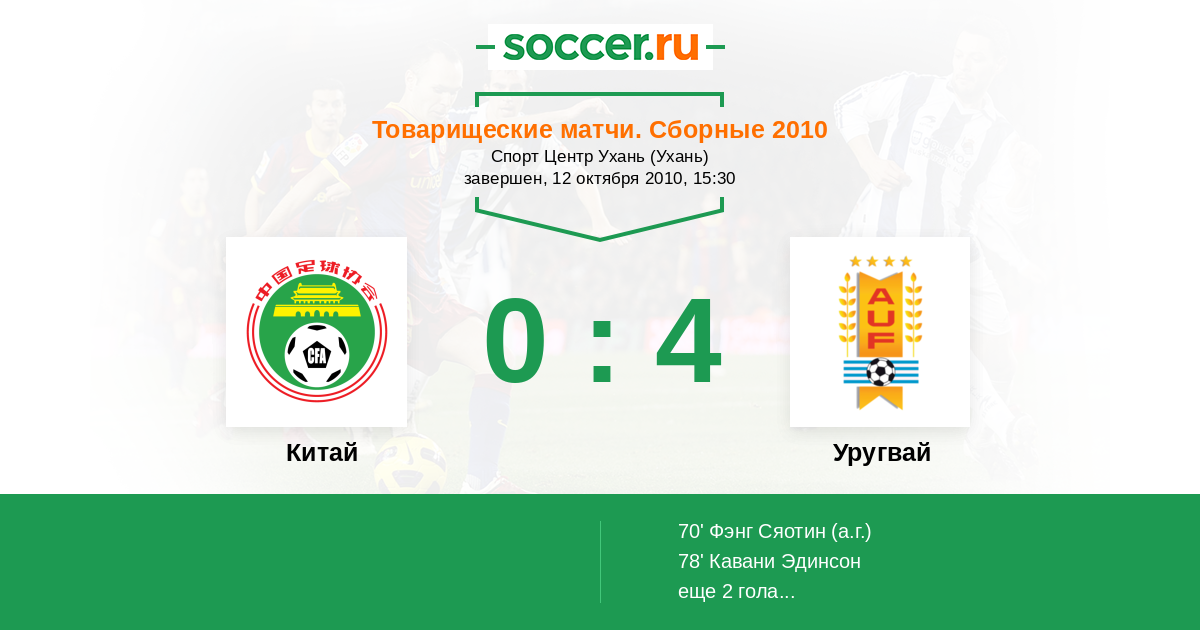 Протокол матча Китай против Уругвай