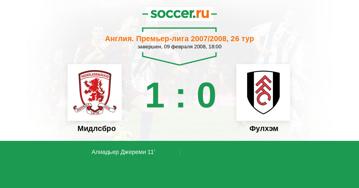 Протокол матча Мидлсбро против Фулхэм