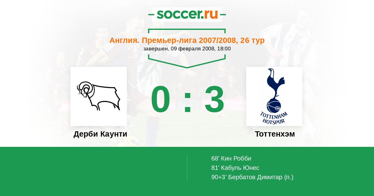 Протокол матча Дерби Каунти против Тоттенхэм