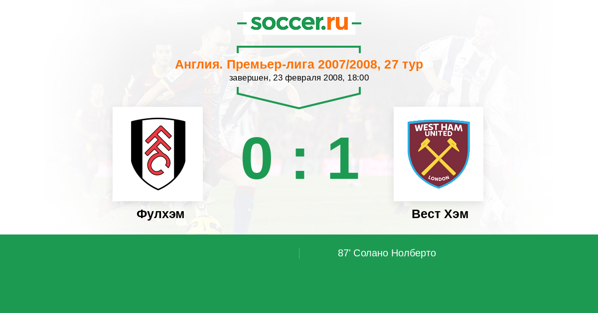 Протокол матча Фулхэм против Вест Хэм