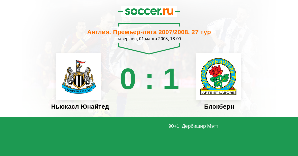 Протокол матча Ньюкасл Юнайтед против Блэкберн
