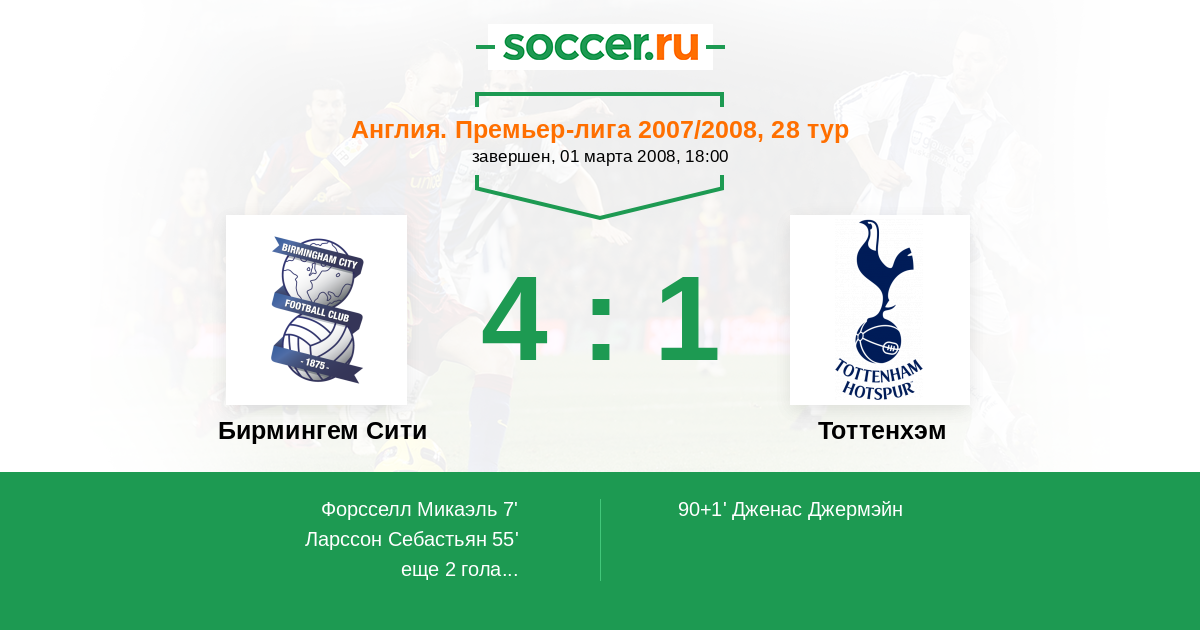 Протокол матча Бирмингем Сити против Тоттенхэм