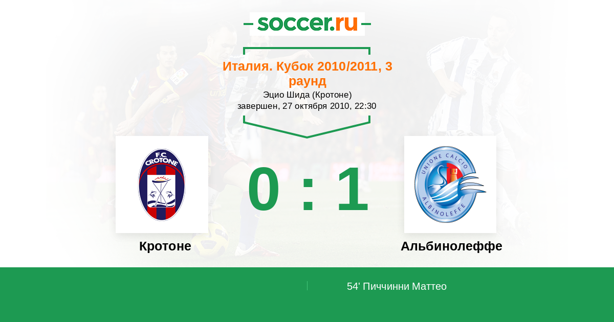 Протокол матча Кротоне против Альбинолеффе