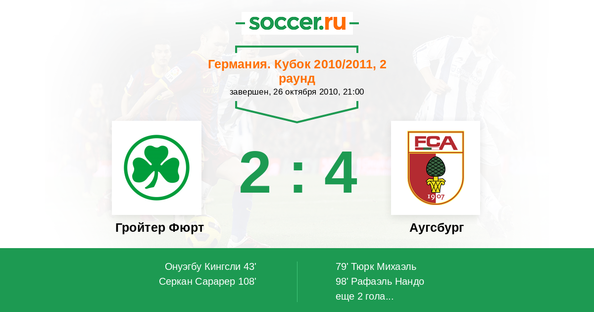 Протокол матча Гройтер Фюрт против Аугсбург
