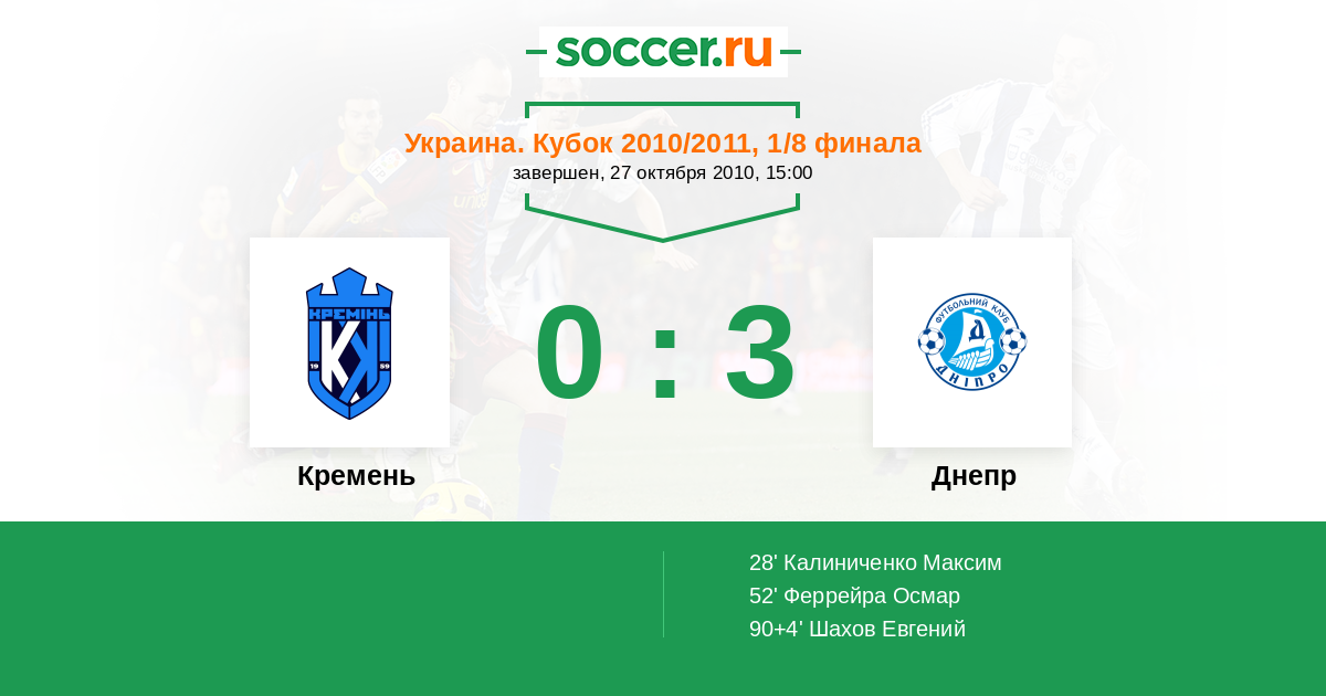 Протокол матча Кремень против Днепр