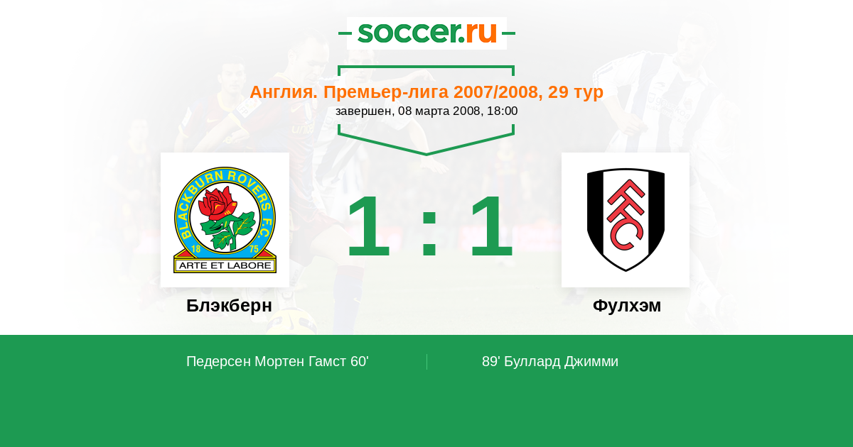 Протокол матча Блэкберн против Фулхэм