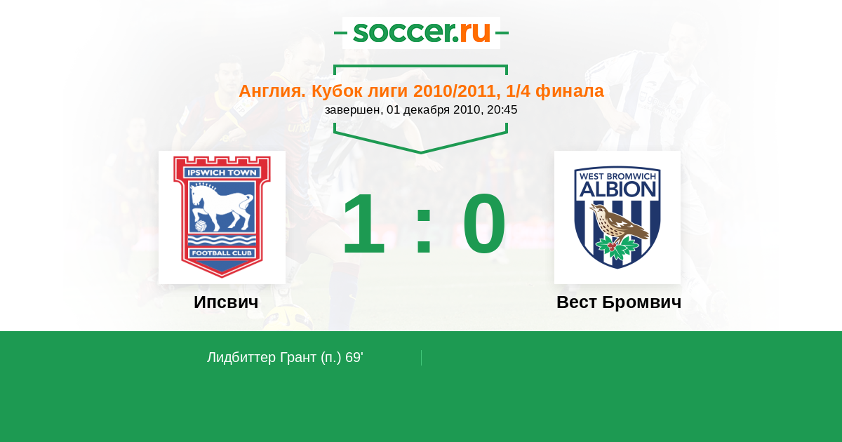 Протокол матча Ипсвич против Вест Бромвич
