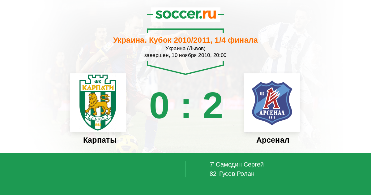 Протокол матча Карпаты против Арсенал