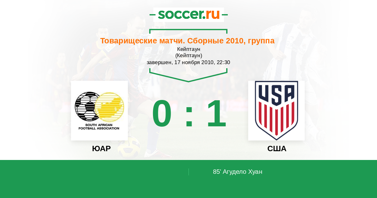 Протокол матча ЮАР против США