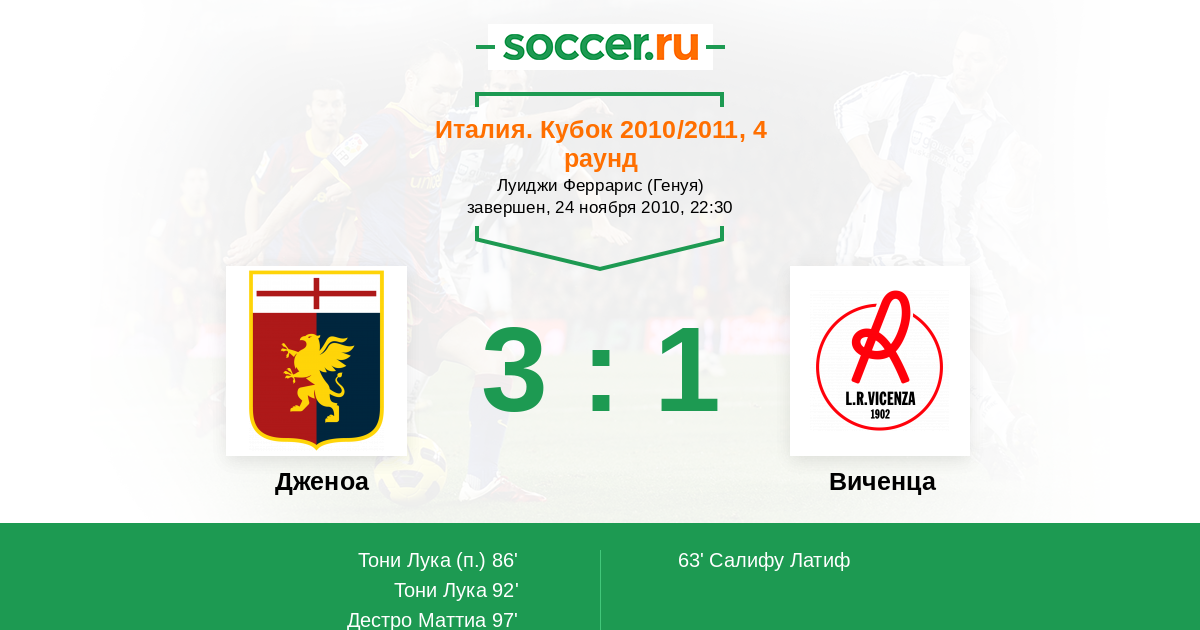 Протокол матча Дженоа против Виченца