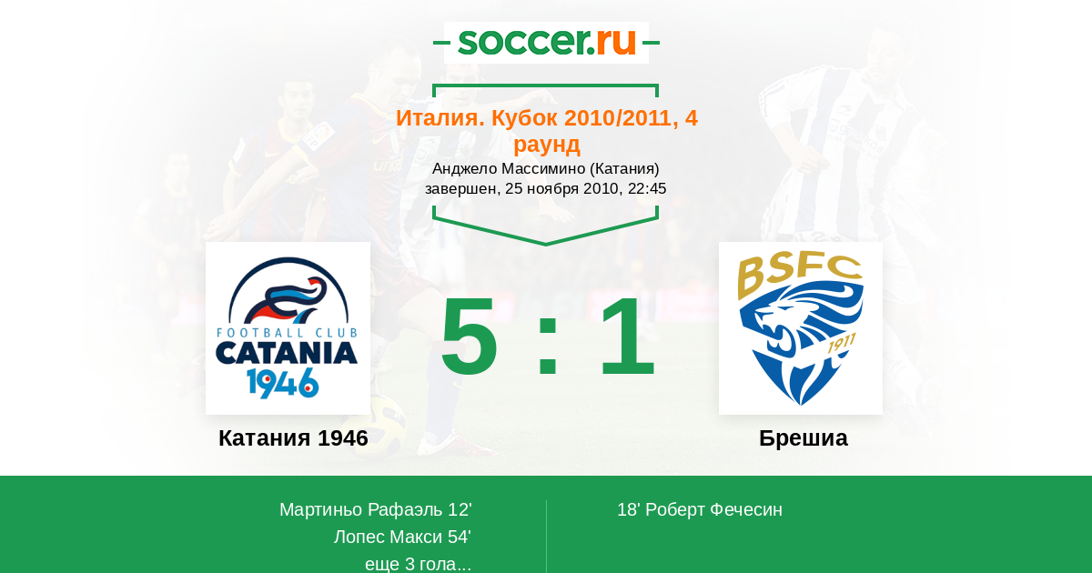 Протокол матча Катания 1946 против Брешиа