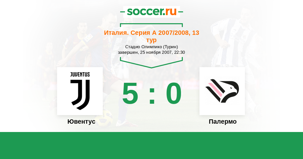 Италия. Серия А 06.04.2008 Палермо Логотип футбольный клуб Палермо 3:2 Логотип футбольный клуб Ювентус (Турин) Ювентус