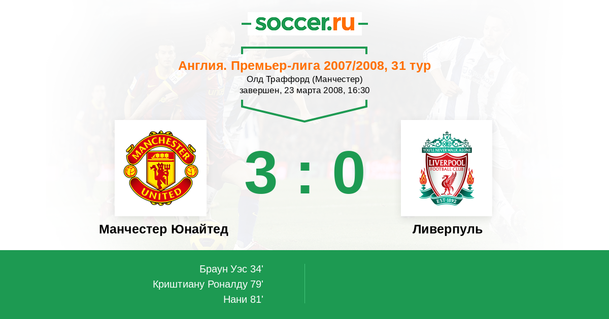 Протокол матча Манчестер Юнайтед против Ливерпуль