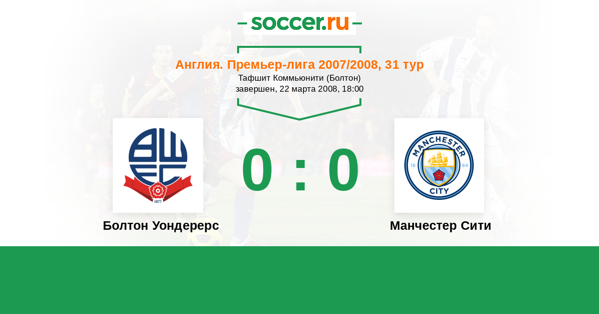 Протокол матча Болтон Уондерерс против Манчестер Сити