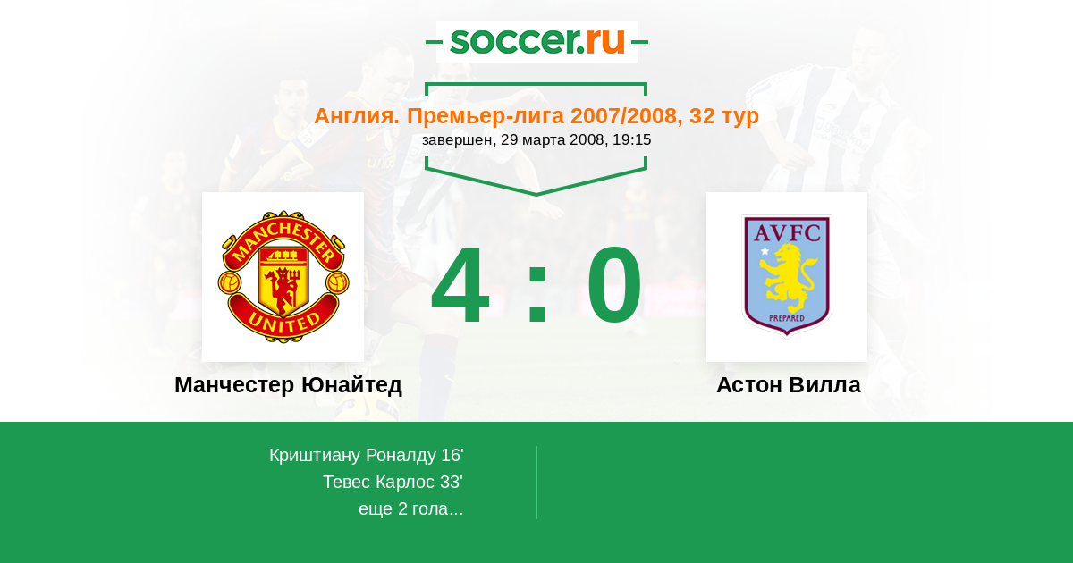 Протокол матча Манчестер Юнайтед против Астон Вилла