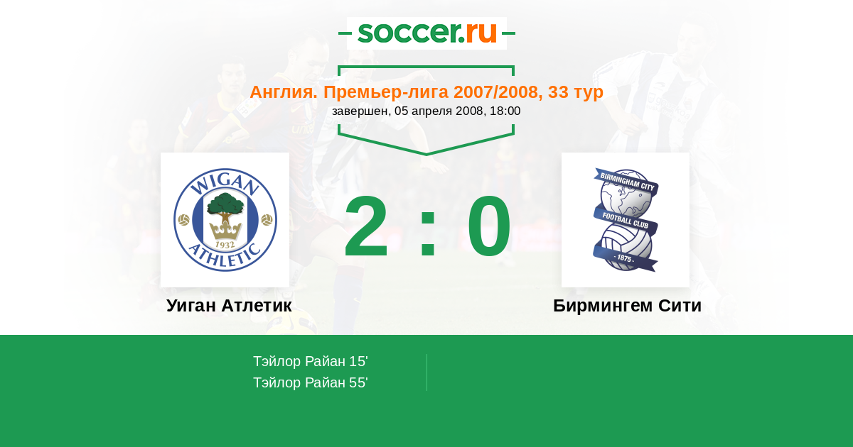 Протокол матча Уиган Атлетик против Бирмингем Сити